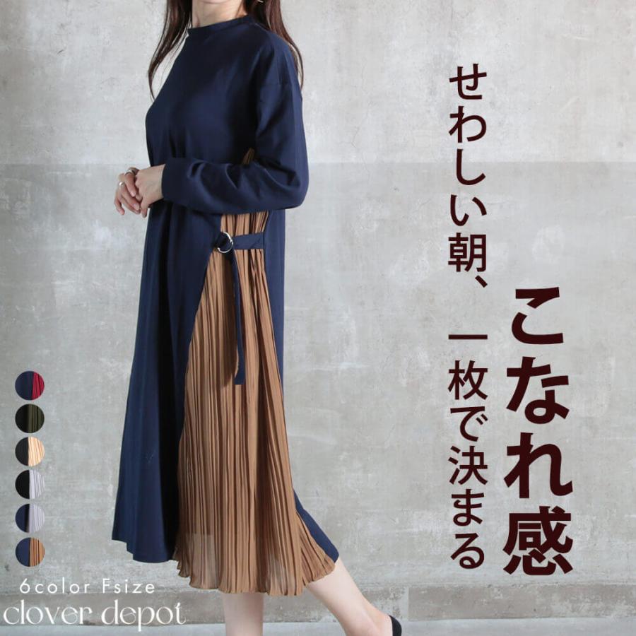 楽天市場 新番 サイドプリーツ ワンピース プリーツ レディース プリーツワンピース ロングワンピース ロング丈 ノースリーブ ラウンドネック 切り替え 長袖 ミモレ丈 大人 秋 冬 シンプル 無地 韓国ファッション ファッション春